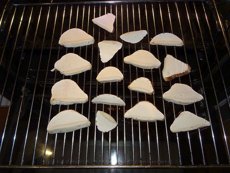 Das Trocknen des Birkenporlings kann entweder im Ofen bei 50-60 Grad über mehrere Stunden luftig auf einem Rost gelegt unter Heißluft erfolgen oder energiesparend im Herbst und Winter auf der Heizung, die man zuvor möglichst maximal hochdreht.