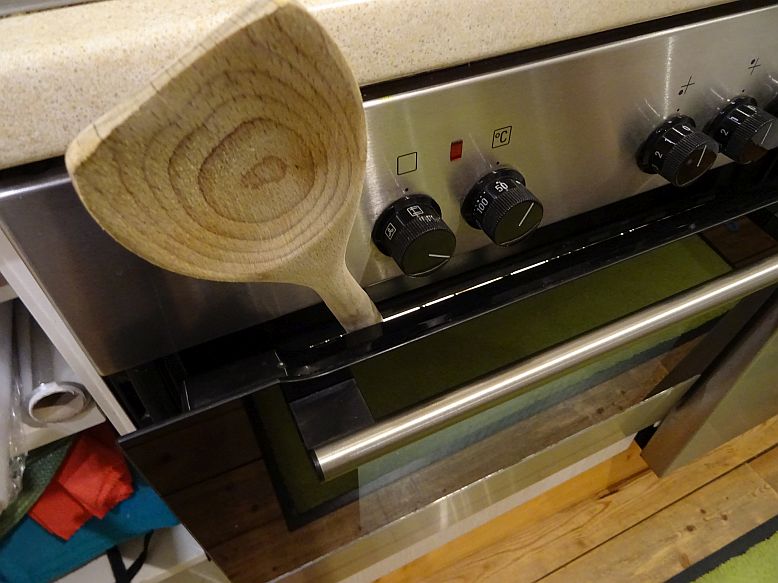 Den Ofen mit einem Kochlöffel zum Trocknen der Pilze einen Spalt offen lassen, damit das Wasser als Dampf sicher entweichen kann. Die Temperatur darf auf keinen Fall zu hoch sein. 50 bis maximal 60 Grad reichen vollkommen aus!